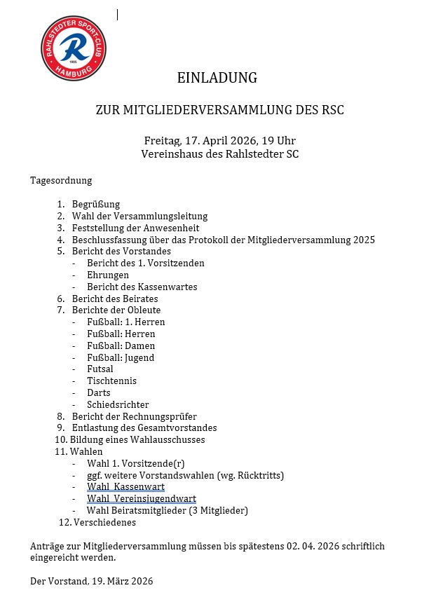 Der RSC sucht zur Unterstützung seiner Altherren- und Seniorenteams Spieler im Alter von 31 - 71 Jahren